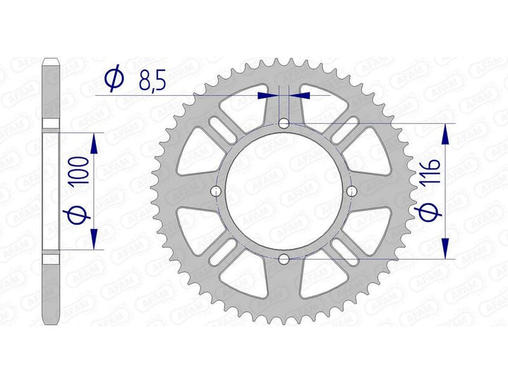 AFAM ALU REAR PROCESS PRODDED WITH AN ALLOY WHICE COMBINES Lightweight and Resistance. The High-Quality Manufacturing Process and the Cutting Precision Made AFAM A World Leader for Motorcycle Transmission Parts. Aluminum Ultra-Light Rear-Procetaluminum 7075 T6TOP of Range Manufacturing and Quality LIGHTER THAN Steel Chain_pitch: 420.0 Material: Aluminum rear_prolet_teeth_count: 49.0 REAR_PROPET_PET_ 17104