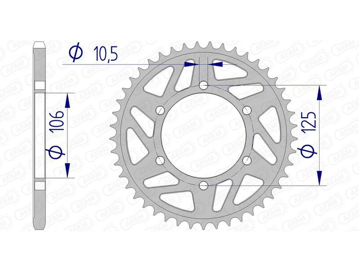 Afam aluminum crown gears are made of an alloy that is both light and tough. The Quality of Machining and the Precision of the Cutting Make AFM A Worldwide Standard Settes for Motorcycle Transmission Parts. Racing Aluminum Crown Gear Ultra-Light with Hard Anodizationreinforced Resistance to free and wearrange-topping Finish and Qualityessential for Competitive Riding Chain_pitch: 520.0 Material: Aluminum Rear_Procet_Teeth_Teet: 47.0 REAR_PROET_SSION: Ultra-Light Hard Anodized