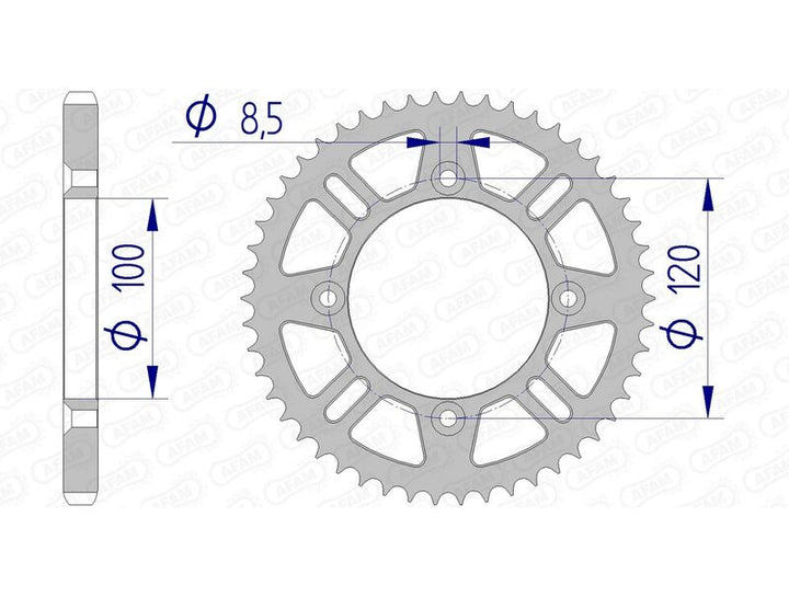 AFAM ALU REAR PROCESS PRODDED WITH AN ALLOY WHICE COMBINES Lightweight and Resistance. The High-Quality Manufacturing Process and the Cutting Precision Made AFAM A World Leader for Motorcycle Transmission Parts. Aluminum Ultra-Light Rear Procetaluminum 7075 T6TOP of Range Manufacturing and Quality LIGHTER THAN Steel Chain_pitch: 428.0 Material: Aluminum rear_prolet_teeth_count: