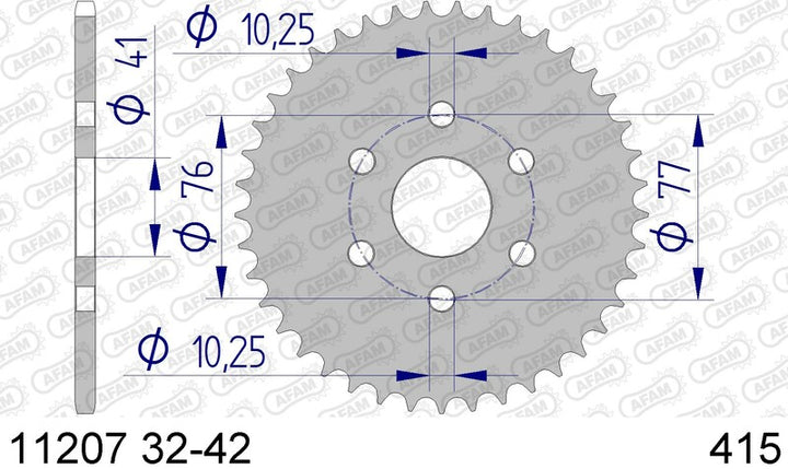 AFAM ALU REAR PROCESS PRODDED WITH AN ALLOY WHICE COMBINES Lightweight and Resistance. The High-Quality Manufacturing Process and the Cutting Precision Made AFAM A World Leader for Motorcycle Transmission Parts. Racing Type Aluminum rear-Procetultra-light and hardened anodizationincreases friction resistance and Durabilitytop of Range Manufacturing and Qualityessential for Racing Chain_pitch: 415.0 Material: Aluminum: 38. 0 REAR_PROET_SSION: ULTRA-LIGHT