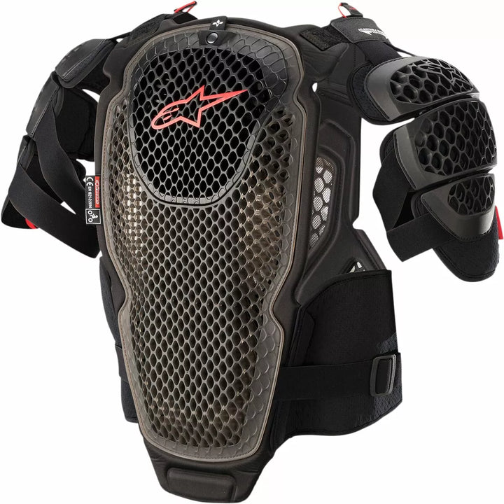 Chest Protector Plastic Shells Are Constructed Form A High-Performance Polymeric Material Blend for Optimized Flexibility and Excellent Weight Saving Properties, The Plastic Shells Feature Extensive, Strategically-Positioned Perforation Zones for Excellent Breaty Breator Side Wings victim Optimal Rider Comfort, an Adjustable Quick Release Waist Systems for a Customized Fit and Ensures Protection Secure and Close to the Body at All Times, The Flexible Front Wings Are Connected to the Main Chest Protect independently and adapt to the natural contours of the body, removable back puck for bns compatibility, silicon bns pull tab for convenient and safe engagement of the bns, the removable shoulder protectors allows this upper body protect The Protector to the Conditions, The Removable Shoulder Protectors Feature An Adjustable V-Strap System to a Comfortable and Snug Upper Arm Fitment, Slim Fit Stretable Fabric for a Comfortable Fit, Back Protector Et 1621-2: 2014 Level 2., Chest Protecto EN 1621-1: 2012 Level 1.