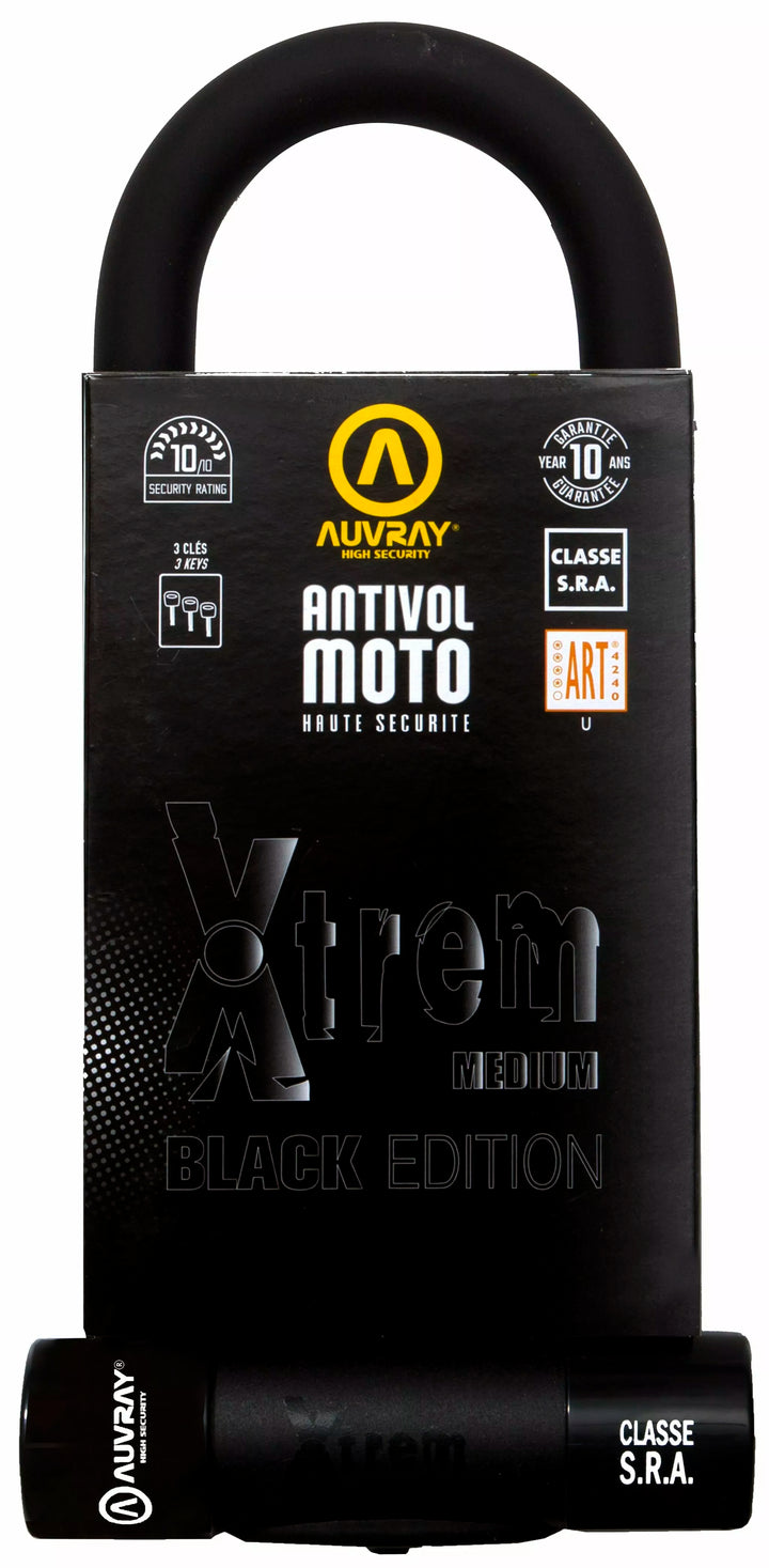 Security U-Lock, Ø 18 mm Passivated Hardered Steel Shackle, Shackle Protection Cover in Black Matte Finish, Hardened Steel Lock Body, Hardened Steel Double Bolt Locking Mechanism, 7 Discs High Security Lock Cylinder, Sawing and Attack, Sawing, Pick, Pick, Pick, Pick, Pick. Of Cutting, ABS END CAPS AND KEY DIRT COVER, 3 FLAT MILLED KEYS, Key Cutting Service, Using Exclusive Copy Code