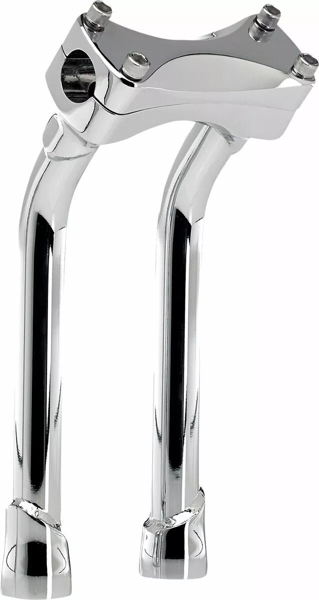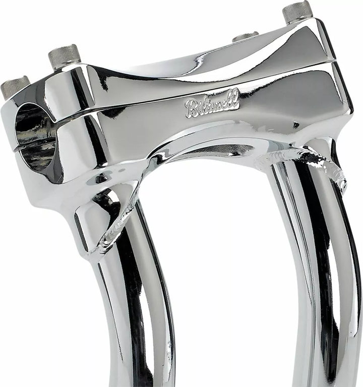 Investment-Cast One-Piece Steel Bar Clamp Accepts 1-1/8 "O.D. Handlebars, 0.120" (3 mm) Wall x 1 "o.d. 4130 Chromoly Uprights, CNC Lathe-Turned Mounting Base Accept 1/2-13 T.P.I. Stock Fit Most Stock and Select Aftermarket H-D Fork Trees, Pullback Murdock Risers Feature Mandrel-Bent Uprights for Two Inches of Rearward Bar Offset-Perfect for Reducing Reach for Shorter Riders, Tig Welded and Hand Polished Before, Bar Clamp Hardware