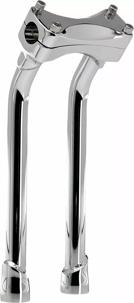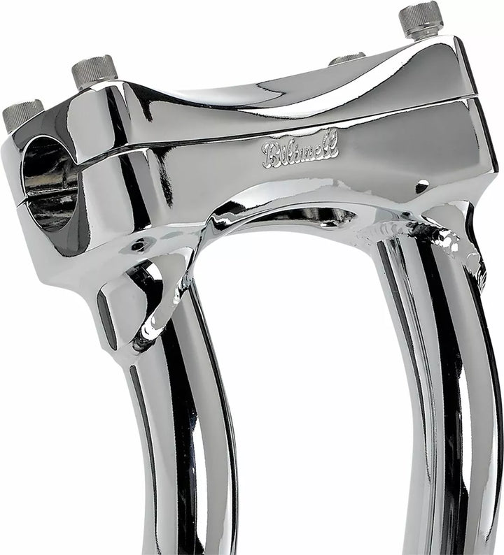 Investment-Cast One-Piece Steel Bar Clamp Accepts 1-1/8 "O.D. Handlebars, 0.120" (3 mm) Wall x 1 "o.d. 4130 Chromoly Uprights, CNC Lathe-Turned Mounting Base Accept 1/2-13 T.P.I. Stock Fit Most Stock and Select Aftermarket H-D Fork Trees, Pullback Murdock Risers Feature Mandrel-Bent Uprights for Two Inches of Rearward Bar Offset-Perfect for Reducing Reach for Shorter Riders, Tig Welded and Hand Polished Before, Bar Clamp Hardware