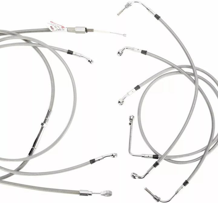 Complete Installation Kit For Burly Ape Hangers, Kit Includes Extended Brake Line, Extended Clutch Cable/Clutch Line, Extended Throttle/Idle Cables as Required and All Necessary Wiring, Brake Lines Feature Ptfe Inner Liner and Heavy stain Throttle-by-wire Harness, Kit is based on Using 2 "Risers with Ape Hangger-Style Handlebars.