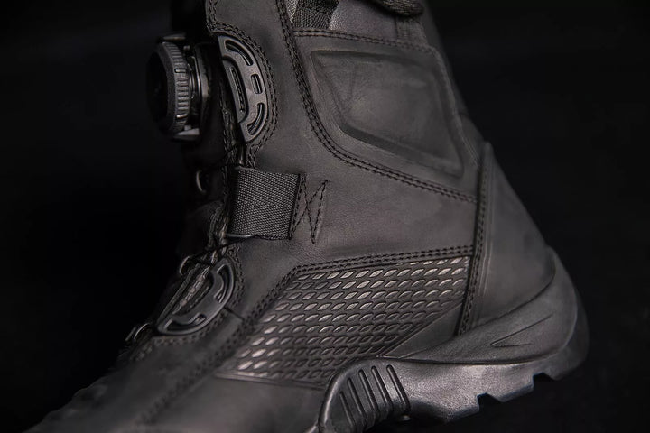 Premium Leather Upper Feature A Water-Resistant Finish, Breathable Event Waterproof Liners Help Keet Dry, Highly Lugged Oil/ Slip-Resistant Rubber Outsoles Provide Peak Motorcycle Performance, Open-Cell Polyurethane Insoles Feet, Ba. Comfortable Fit, Dual D3O® Inserts Provide Ankle Coverage, Reinforced Rubber Toe Caps, Reflective Heel Accents and Shifter Interface NUBS