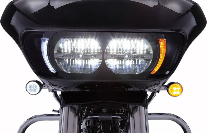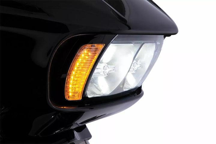 Clear Lens With Bright White/Amber LED Lights, Replaces Dul Factory Plastic Trim, Lens is Removable to Factory Paint Match, Easy Bolt On Installation With No Modification, Plug-and-Play Wiring Adapter Included, Use Power Y-Harness Part # 2120 Multiple Lighted Fairing Accessories