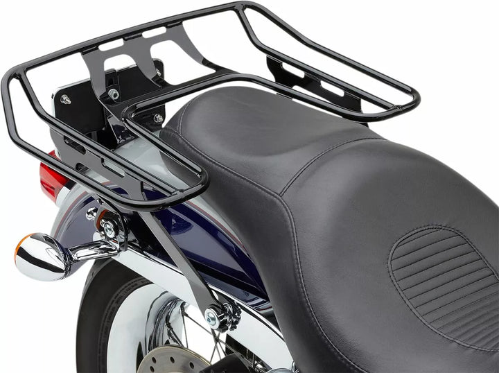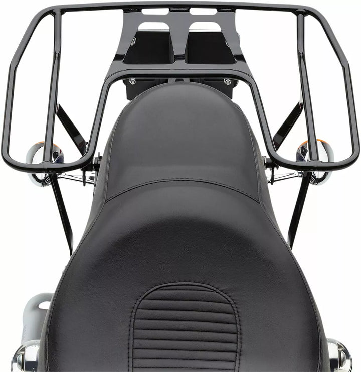 Top of the rack is about level with Top of Seat and Each Rack Has a kick up in the rear, there are places to attach bungee cords or mounting straps so you no longer have to scratch your bike fen s fender as you secure your cargo, mounting hardware alta. Harley-Davidson Mounting Kit., If Aftermarket Seat is not Saddlemen or Lucky Daves Step Ups, then Look Carenly at the Measurements of the Opening to Ensure the Rack Will Fit Around Your Bike メ S Seat.