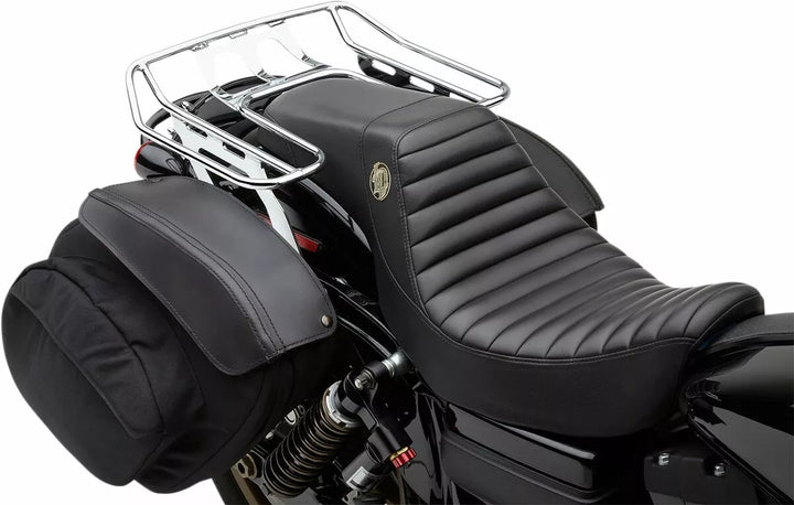 Top of the rack is about level with Top of Seat and Each Rack Has a kick up in the rear, there are places to attach bungee cords or mounting straps so you no longer have to scratch your bike fen s fender as you secure your cargo, mounting hardware alta. Harley-Davidson Mounting Kit., If Aftermarket Seat is not Saddlemen or Lucky Daves Step Ups, then Look Carenly at the Measurements of the Opening to Ensure the Rack Will Fit Around Your Bike メ S Seat.