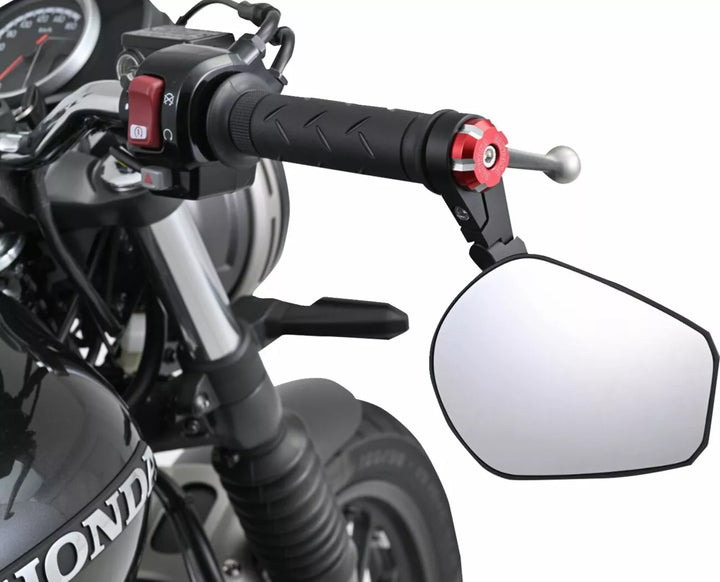 "W" Handlebar End Weights Made of CNC Machined Aluminum, Anodized with Dual Function, The Handlebar Weights Can Also Be Used as a Mount for Handlebar End Mirrors, Suitable for Handlebars with an inner diameter of 14 to 19mm. 31mm outer diameter, (Ø30mm and 12mm Width)