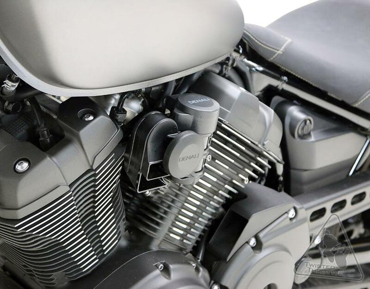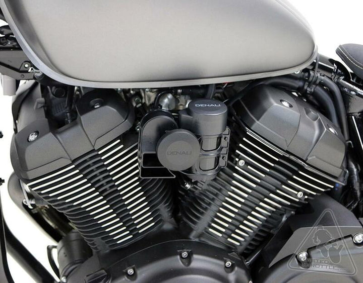 Denali Soundbomb Horn Mount Yamaha HMT.06.10100 is a vehicle-adapted bracket that enables the mounting of Denali Soundbomb Original Dual-Tone Air Horn on your Yamaha motorcycle. This kit contains a robust powder coated steel fittings with an M8 mounting hole and all necessary mounting hardware. It is specially designed to suit Yamaha Bolt models from 2014 to 2021 and the Yamaha SCR950 from 2017.