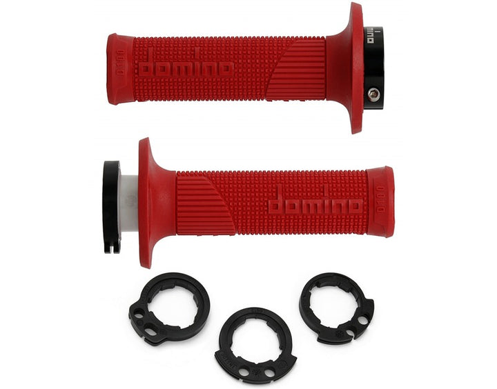 «High Grip» Technology: The Knurling-Domino Patented-Maximizes The Grip In Any Direction and the Adherence Between Grips and Gloves An Index-Thumb Pad and the 3 CLIKS WAFFLE ON THE BACK INCRAAS THE GRIP MATERIAL: Thermoplastic Dianger Color: Oranges Color Right 130 mm Grips Lenght: 116 mm Grip End: Closed Flange Diameter: 61.5 mm Handle Diameter: 30 mm Color: Red Grip_compound: Single Compound Grip_Type: Full Diamond Lock-on: OUI