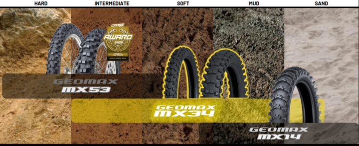 Aspect_ratio: 90.0 Ground: Medium-Soft-Mud Homologation: NHS (Not for Highway Service) Position: Rear Rim_diameter: 19 Speed_index: M < 130 km/h Tire_category: MX, SX Tire_family: Motorcycle & Scooter Tires Tire_load_index: 62.0 Tire_pattern: GEOMAX MX34 Tire_Structure: X-Ply Tire_width: 110 Tubeless_or_Tubetype: TT - Tubetype Tyre_compound: Mid-soft