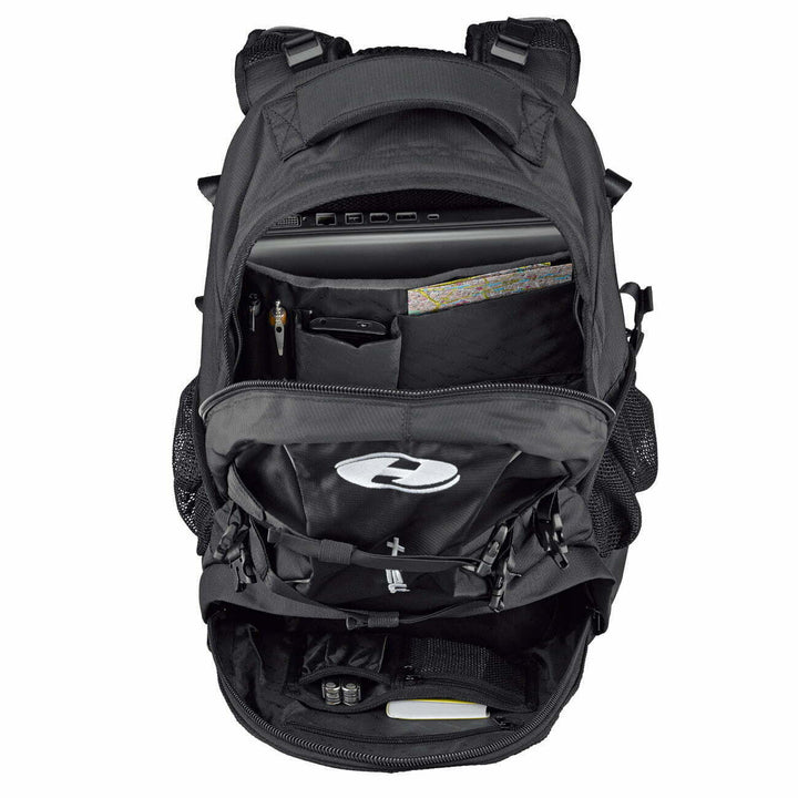 Ideal for motorcycling with padded straps, click buckle on the chest and waist