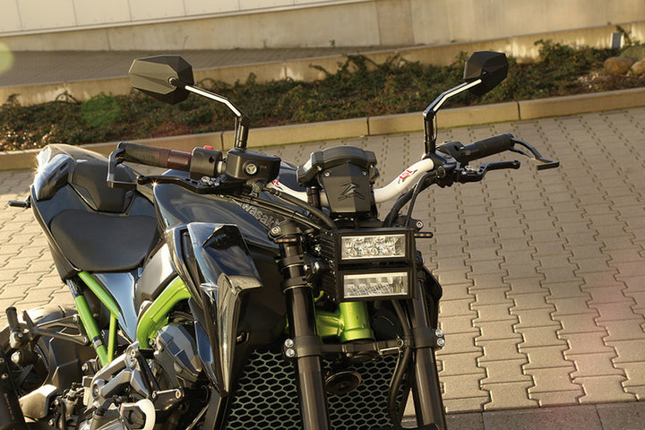 On the back of the aluminum house is cooling fine. The Clear, simple design of the headlight set is suitable for streetfighters, cruisers and naked bikes.