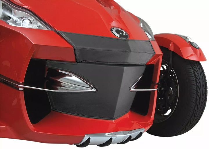 An attractive finish-saving accessory designed to reduce the nicks, chips and bugs that pummel the front cowl and front trunk of the can-am rt, Two-piece front cowl and trunk good set has a tailor's good for the front trunk and ancrapher tailor Tailors Reduces the road rash the can-am rt tates, and provides a clean blacked-out look to the Front Cowl, Both The Upper and the Lower Bras Wrap Into the Front Trunk Lip and Are Held Securely in Place With Special Adhesive-Backed Hook and stitked LOOP