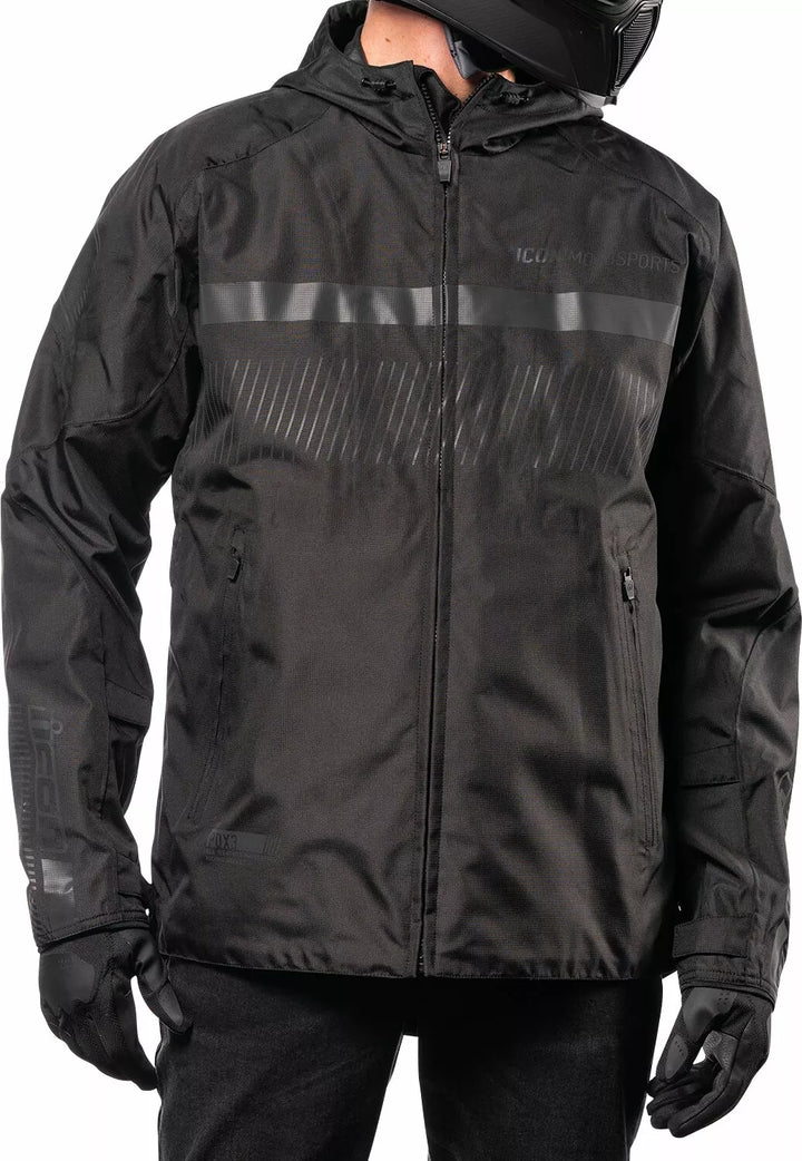 Removable Insulated Vest Liner, Internal 300D Polyester Reinforcings, Hycor ™ Waterproof/Breathable Chassis, Oversized Pit Vents, Icon® Relaxed Fit, Roll and Stow Hood, Back Protector en 1621-2 Level 1