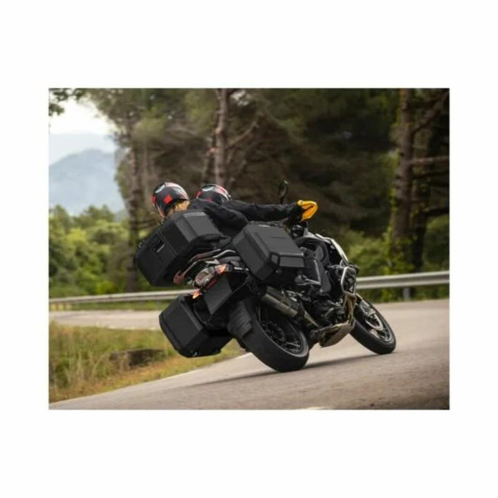 Are you looking for a top box that can handle long journeys, tough roads and at the same time looks damn good? Then Shad TR55 Terra Pure Black the right choice for you. This one adventure box in matte black aluminum holds two module helmets, weighs only 5.4 kg - and is the lightest aluminum top box on the market. Built in Barcelona, designed for those who do not compromise with function or style.
