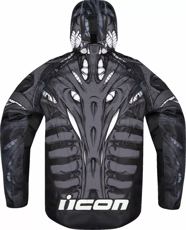 AirForm Manik'r ™ Graphic on Front and Back of Jacket, 420D Polyester Chassis With 300D Polyester Internal Reinforcing, PU-Coated Shell Material with DWR Finish, D30® Removable Viper Back Protector; Elbow and shoulder Impact Protectors, Bungee Cord Style Drawstring Hood, AirFly ™ Center Front Mesh Panel with Chest and Back Zippered Vents, Vented Cuff Zippers, Back Protector en 1621-2 Level 1