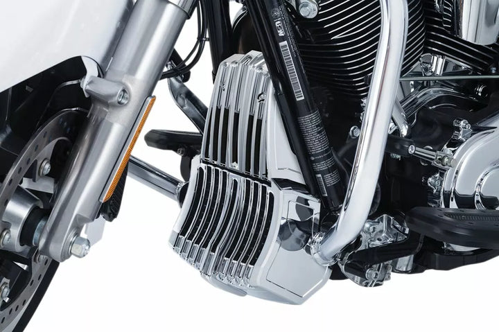 Two-Piece, Stamped-Steel Chrome-plated Cover Fits The Stock Regulator, Open, Well-Vented Design Keeps Things Running Cool, Functional, Decorative Fasteners Add A Custom Touch, Vented Cover Has Room Inside to ADD LIGHTS FOR A COOL ACCENT