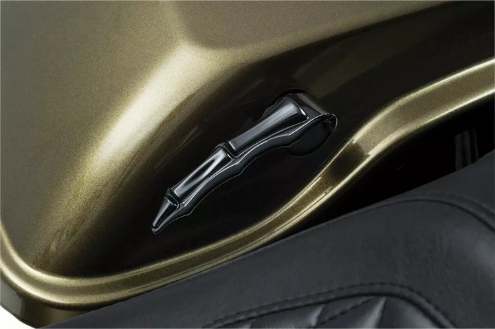 Sleek Direct Replacement for the Factory Saddlebag Lid Handle, Offering Improved Ergonomics and Sinister Styling, Made From Quality A380 Aluminum