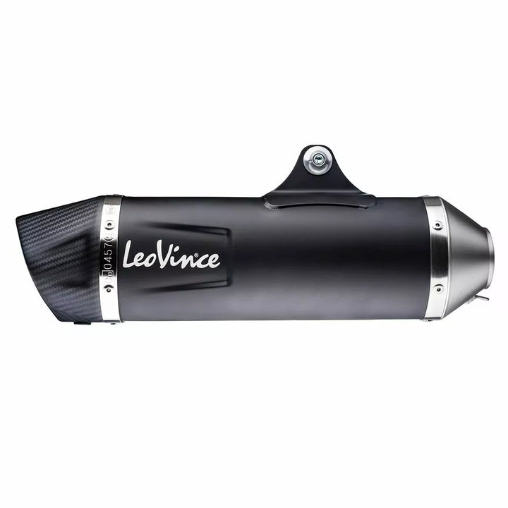Nero Exhaust System, Aggressive Style and Sharp Lines., Leovince Nero is the Muffler for Motorbikes and Maxi-Scooters with a Dark and Modern Look, The Result of Leovince's Constant Research of Quality Steels and Exclusive Processes. Clear Coating for UV Resistance, Metallic Ceramic-Based Black Paint, Matte Finishing, Laser Etched Leovince Logo