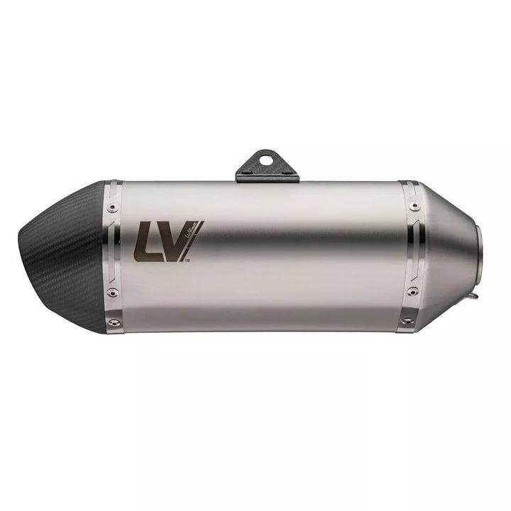 LV-14 stainless steel slip-on muffler, Leovince LV-14 represents 70 years of technical and stylistic innovation., Its unique shapes and state-of-the-art materials combine to create a durable and elegant exhaust that enhances and riding aesthetics Incorporates sound-absorbing materials with high thermal resistance, Hand-Assembled to Deliver the Classic and Unmistakable Leovince Sound., Tig Welds, Handcrafted by Skilled Technicians, Ensure Strength and Reliability.