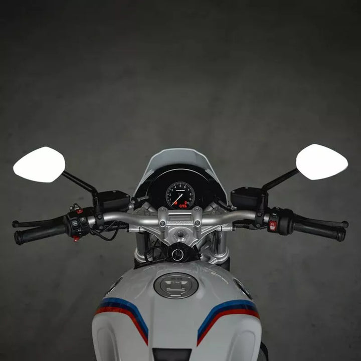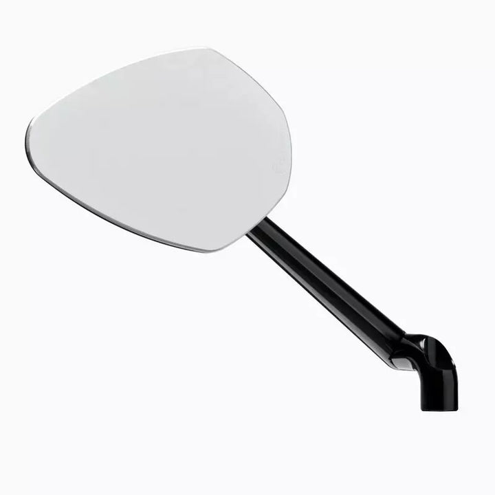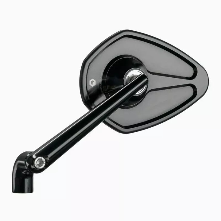 The add-on mirror can be easily fitted to any m10 mirror thread on the handle bars. Depending on Preference or Vehicle Type, There Are Two Arm Lengths to Choose From That Can Be Perfectly Attached To The Handlebars. For Some Models - SUCH as Harley -Davidson ™ Motorcycles - A Matching Mo.view Screw Kit Is Also Available Separately (Part: 06410255), Our Glasless Mirror Series Mo.view is Unique in the World. The Special Feature of Our Mirrors is the Patented Mirror Surface, Which Is Worked Directly From the Metal of the Body. The Aluminum Itself is the Mirror Surface., The Mirror Body Itself Beces Very Thin and Light, Creating a Weightless Design With No Rim or Frame. The Convex Mirror Surface is Manufactured by Fly Cutting Using Diamond Tools On Ultra-precision Machines in Berlin. It is then made resistant to oxidation, corrosion and abrasion by a complex plasma coating in a vacuum., The mirror body and mirror arm are milled from solid aluminum on cnc machines and anodized to high quality. All Screws are Made of Stainless Steel. , The precise ball joints the Comfortable and Very Stable Adjustment of the Mirror. Glass Breakage or Falling Out is Simply Not Possible., The Mounting Mirror Can Be Mounted on any Mirror Thread M10 on the Handlebar. Three Mounting Screws with Different Thread Are Supplied. The Mirror is Suitable for the Left and Right Side, Mirror Body Width: 122 mm., Mirror Body Height: 83 mm., Length Mirror Arm: 180 mm., Thickness of the Mirror Body Without Ball Head: 4.5 mm., Weight: 178 g. Arm (with ece marking), 1 x screw m10 x 1.5, 1 x screw m10 x 1.25 right-hand thread, 1 x screw m10 x 1.25 left-hand thread & instructions manual.