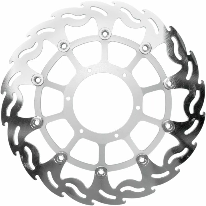 Flame Discs Are Made From Hardended and Refined Chrome-Molybdenum Alloy Steel, Material Ensures Extremely Little Rotor Wear and High-Performance Braking, Flame Discs Are Precision Lasercut, CNC-DRilled and FLAPACE-MACHIND Surface Are Designed for Efficient Cooling and Disc Cleaning to Evacuate Water and Mud, Discs Can Be Used With Any Type of Brakepad, Including Sintered, Aramid, and Ceramic Carbon Pads