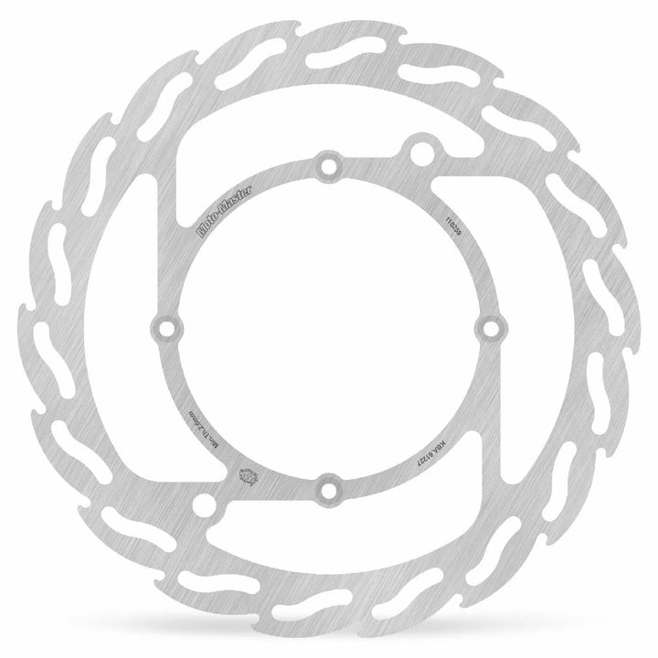 Flame Shaped Valenting Slots And Outer Perimeter Ensure An Equal Amount of Contact Surface Between The Brake Pad and Disc Throughout The Who Rotation of the Disc., Smooth and More Predictable BRAKING ACTION WHICH ALLOWS YOU TO BRAKE HARDER. Double-grinded for Perfect Fitment and Flatness, for Best Performance We Recommend Using Moto-Master Brake Pads with the Matching Pad Compound That Best Suits Your Type of Riding.