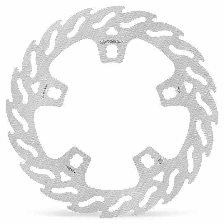 Flame Shaped Valenting Slots And Outer Perimeter Ensure An Equal Amount of Contact Surface Between The Brake Pad and Disc Throughout The Who Rotation of the Disc., Smooth and More Predictable BRAKING ACTION WHICH ALLOWS YOU TO BRAKE HARDER. Double-grinded for Perfect Fitment and Flatness, for Best Performance We Recommend Using Moto-Master Brake Pads with the Matching Pad Compound That Best Suits Your Type of Riding.