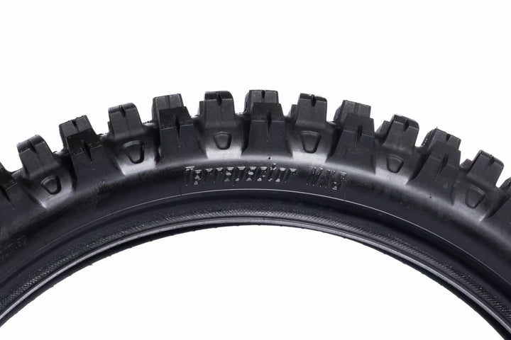 The All New Terrapactor Mxs (MX Soft) Competition Tyre, Is Our Most Innovative Offering for Soft Terrain Riding, specifically Tailored for Soft Soil, Mixed Mud/Dry Mx Tracks., The TerraPactor Mxs Boasts a Lightweight Construction. Primary Goal to Provide Exceptional Performance on Soft Terrains. The MXS Features a Chunky, Open Treat Pattern Designed to Prevent Build-Up and Keep The Treat Clean Along With Ensuring a Firm Grip Even in Sticky Conditions. To enhance the Tyre's flexibility and grip, we have integrated cutting-ed Treat flex zones within the tyre's carcass and knobs., Application-MX, Soft Terrain (Soft soil, mixed mud/dry), Two Front and the TRACK AND 100-21 for Traditional Feel Tell Taller Profile for Increased Contact Patch and Better Feel and Feedback Through Hard Edged Ruts, All New Mx Compound For Improved Longevity and Durability, Light Weight Carcass, Flex Zones Incorated Into Carcass for Improved Cornering Grip and Drive Strability The Feel and Grip of Cornering and Accerading