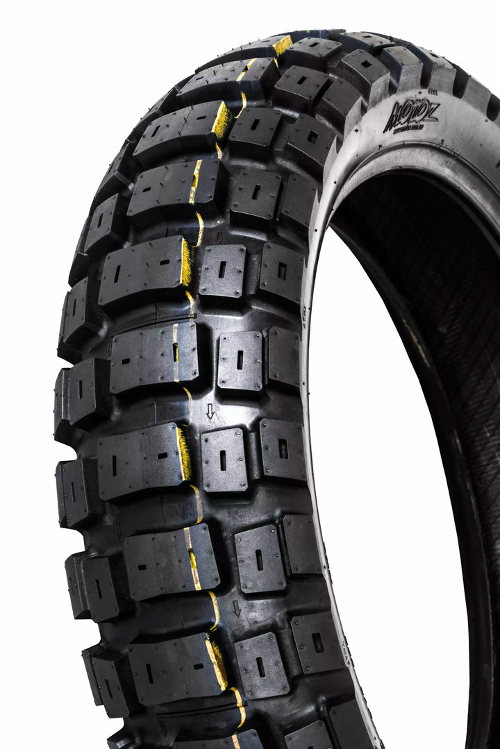 Based on the popular tractionator adventure but with more aggressive off-road traction in all weather extremes., Off-road performance with reasonable on-road manners., Tested and sample construction and compound for adventure and rally use. Without the Need to Change Tyre Pressures Between Off Road and On Road., Self-cleaning and self-sharpening Tread Pattern Gives Excellent Predictability and Power Delivery., Hybrid to coastal Compound with Silica for Optum Grip in Mud and Snow. Forests and Fire Trails., Rallz Also available in Range of Tube Type Adventure Sizes for Light Weight Adventure Bikes.