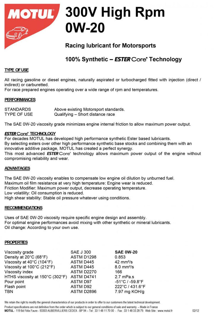 Motul 300V High RPM 0W20 2L (10 pcs/cardboard)