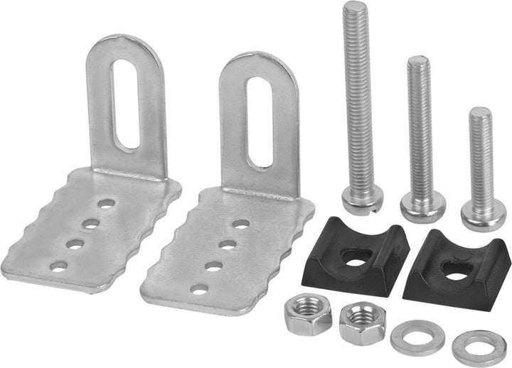 Adjustable L Shape Steel Bracket for rear and front mudguard Allowing Different Positioning of the Mudguards. To fit the mudguard on the frame you can choose between a long or a short clamp according to the space you have available. Assembly: Null Color: Null Diameter: Null Homologation: Null Light Type: Null material: Null Max Load: Null Packing: Null position: Null recommended use: MTB & Trekking Size: Null Tilting System: Null