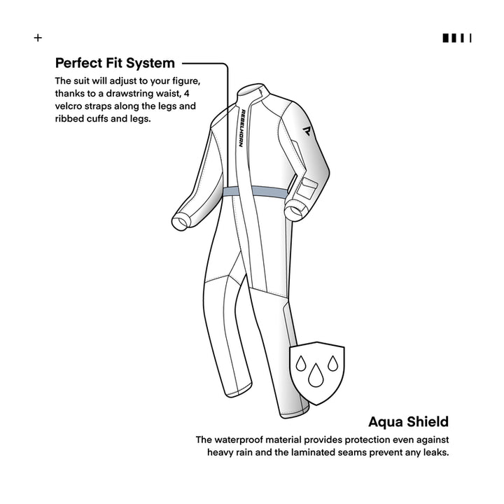 When the sky opens up and the roads get wet, is Rebelhorn Travel Your best defense. This one 1-part rain overall is designed to protect you in the worst weather conditions, whether you commute to work or are in the middle of a long trip.