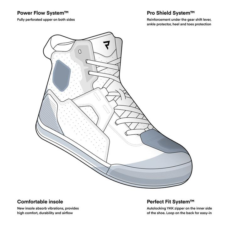 Rebelhorn Vandal II are the perfect motorcycle shoes for those looking for a stylish, comfortable and safe shoe for daily city driving. With its modern design and functional construction, these sneakers combine the best of both fashion and safety - perfect for the urban motorcyclist.