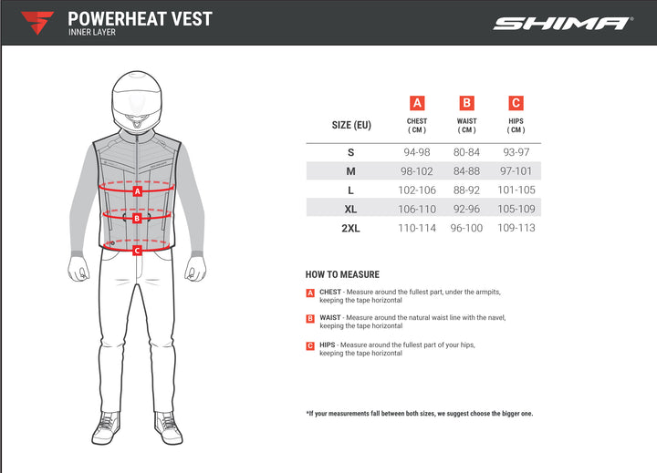 The vest has 3 heating levels that can be adjusted with the control button. This way you will always find the setting that suits you. The discrete fit and the light construction do Shima powerheat To a good complement to a jacket, not just when riding a motorcycle.