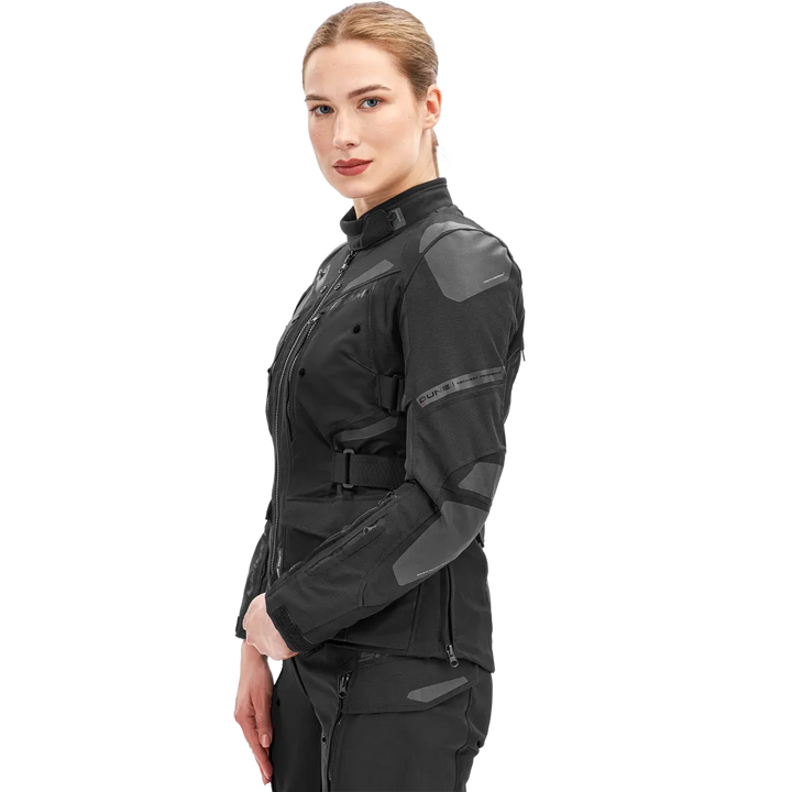 With Lady Fit-Design, stretch panels and well thought out adjustment at the waist, bust, upper arms and wrists, sits Dune Lady as it should. It follows your body - not the other way around. An extra high collar with soft neoprene provides comfort even on long journeys, and the integrated zippers let you pair the jacket with Dune Lady pants for a complete touring outfit.