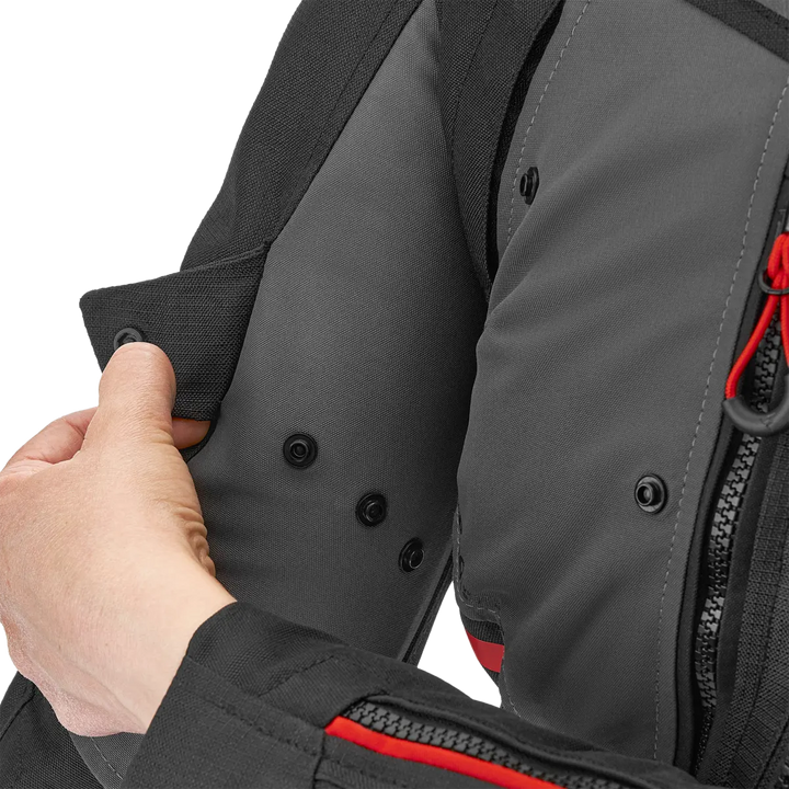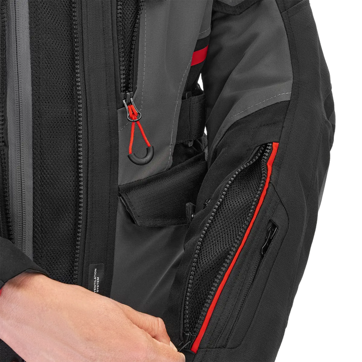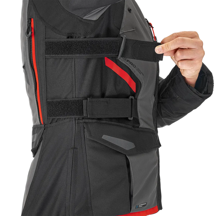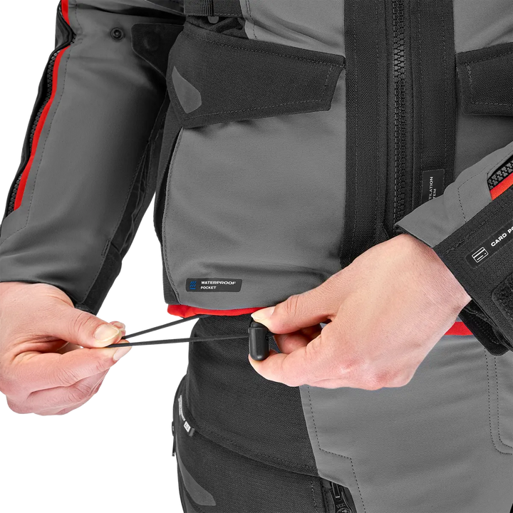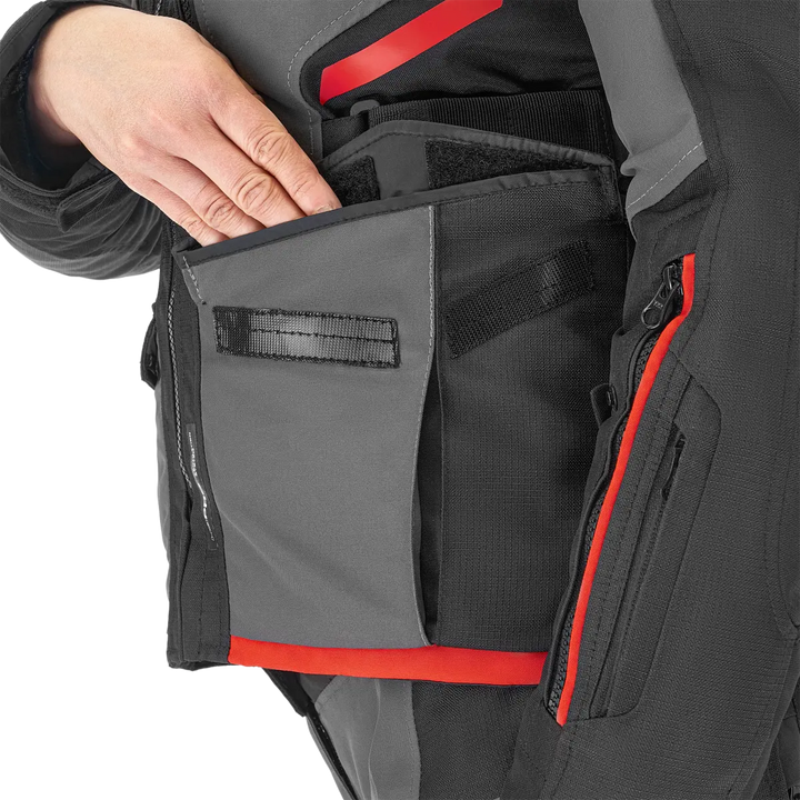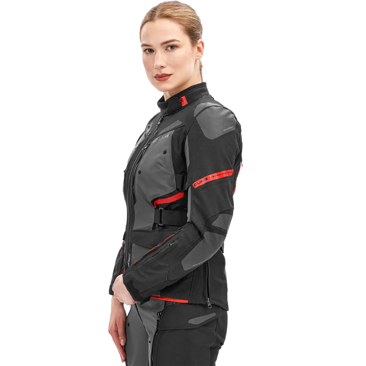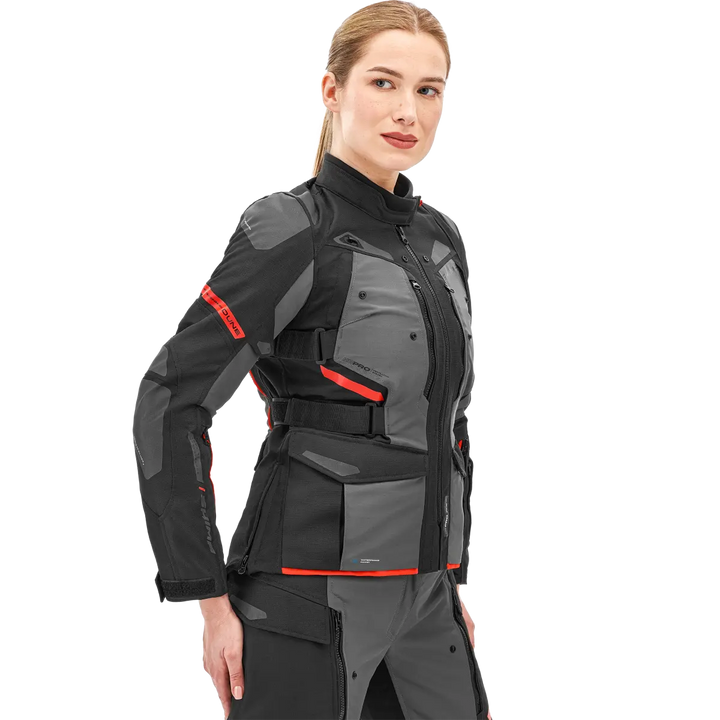 With Lady Fit-Design, stretch panels and well thought out adjustment at the waist, bust, upper arms and wrists, sits Dune Lady as it should. It follows your body - not the other way around. An extra high collar with soft neoprene provides comfort even on long journeys, and the integrated zippers let you pair the jacket with Dune Lady pants for a complete touring outfit.