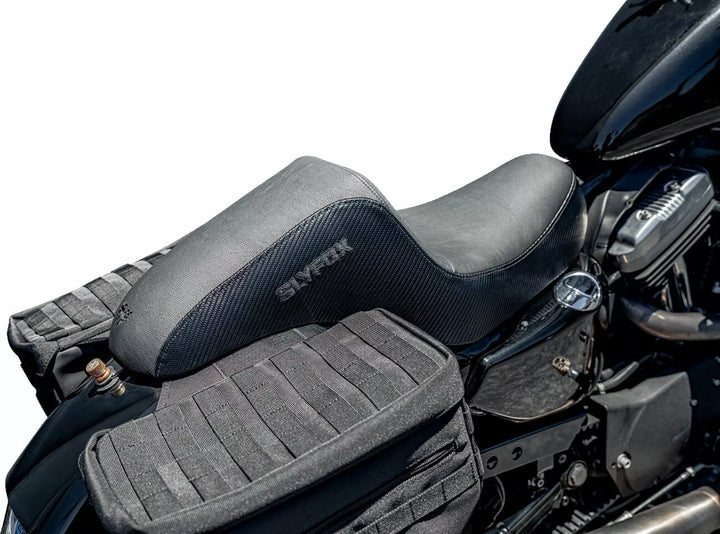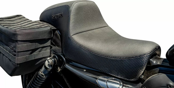Automotive Grade Vinyl Seating Area, Slipstop On Lumbar, and Carbon Fiber on the Sides, Tall Driver Support With Unique Styling, Contoured Seating Area for Maximum Comfort, Narrow Up Front for Better Leg Clearance, Seat Flexible Flexible Urethaf Perfect Fit, Fully Carpeted Bottom, and Rubber Bumpers to Protect Paint, All Hardware Fastened to Seat and Instructions Included, Made in the USA