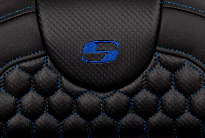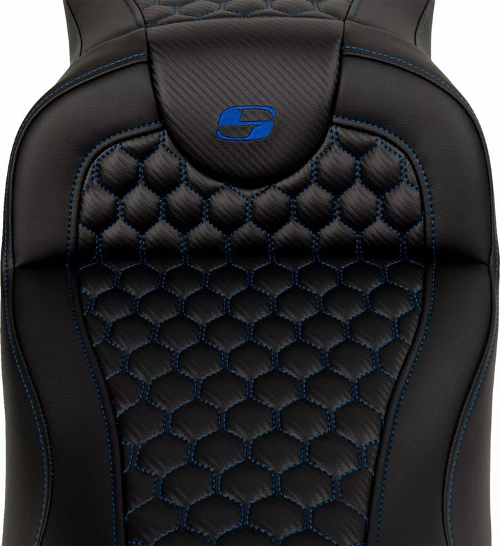 Each Seat Combines a Gel-Core ル Interior and Pro-Foam ル To Create A Foam With A Balance of Compression and Resilience Gear Long Distance Comfort, Pro-Foam ル Unique Molding Process Creates, See Elevae Resistant, Self- Durability as well as Comfort, Honeycomb (HC) Pattern Incorporates Modern Geometry In A Stylish Seat Cover, Saddlegel ル In Front and Real Reduces Tailbone Pressure and Increases Circulation and Comfort for Both Driver and Passenger, Designed and Made in the USA