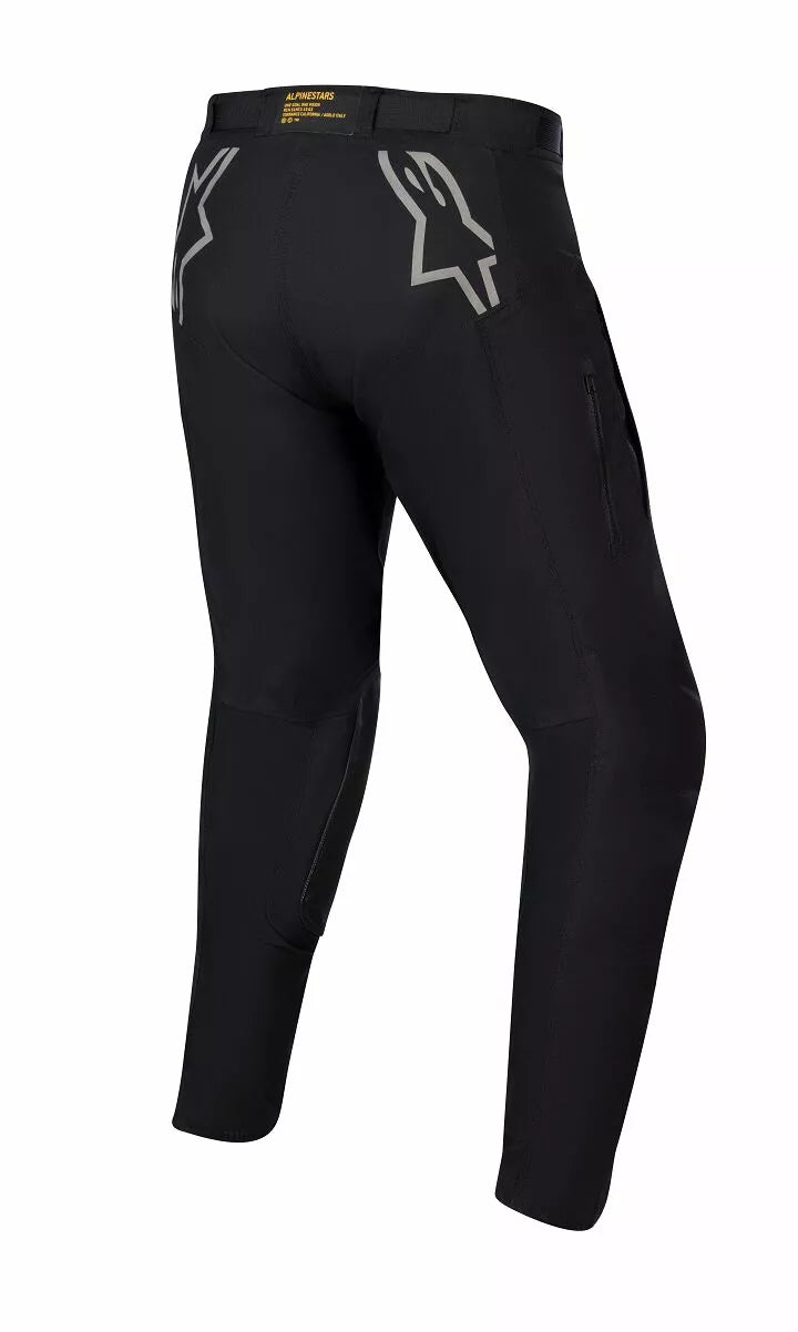 Ruged polyamide canvas material on chassis and goat leather on inner knees for durability. , Breathable and Stretchy Stretchnet Material On Back of the Legs For Comfort., Openable Vents on Thighs for Extra Ventilation., Designed to Fit Over Alpinestars' Knee Protectors.