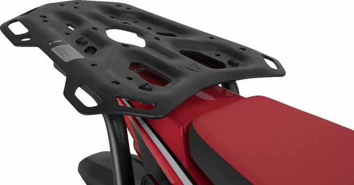 Extremely Robust Rack for Long Tours and Off-Road Rides, Exclusive Manufacturing Processes and Its Optimized Shape Lend An Extra Dose of Stability to the Rack, ITS Extreme Durability During Vibrations, Impacts and High Weight Was Tested In The Lab and Off-Road during HARSHEST CONDIT Cases. Sysbag with adapter plate are available separately with the appropriate adapter kit, offers adapter kits for attaching top cases from givi, krauser and shad, easy rigging of luggage on numerous, large lashing eyes, threading of 25 mm fasteners (Width: 32.9 cm at the front, 22.5 cm at the back, Length: 30.3 cm), easy installation on original attachment points with bike-specific attachment elements