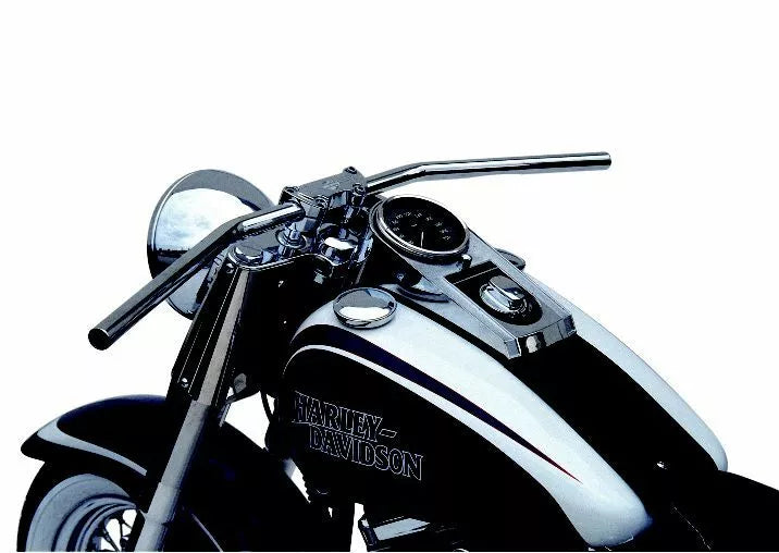 High Quality Steel Tube Handlebars, Three-Part Coating Process Prevents Corrosion, A Variety of Shapes Available, 25.4 mm Handlebar Tube Diameter, No Matte Chrome Areas On Any Of The Bends, Available in Chrome, Black or Aluminum Finish. ACCEPT H-D OEM Heated Grips