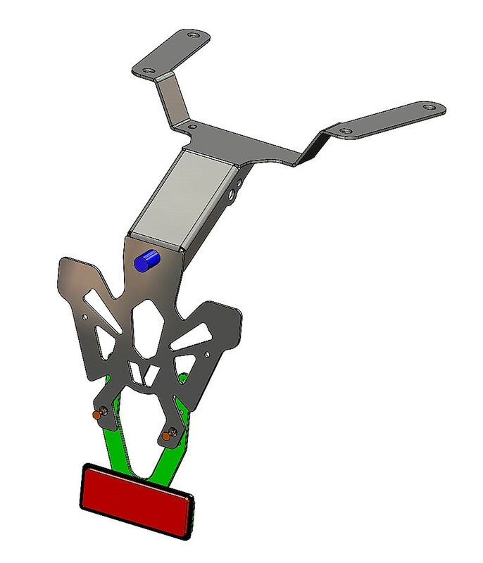 V PARTS license plate holder are manufactured in France. Inconspicuous and perfectly finished, they are specifically developed for the attached bike application list. 2mm thin but sturdy steel license plate holder Black epoxy painting CNC Manufactured – laser cut: precise finish Holes to fix license plate, indicators and license plate lighting Made in France Contents: Street legal license plate lighting, EU certified Adjustable reflector plate Reflector, EU certified Color: Black Material: Steel