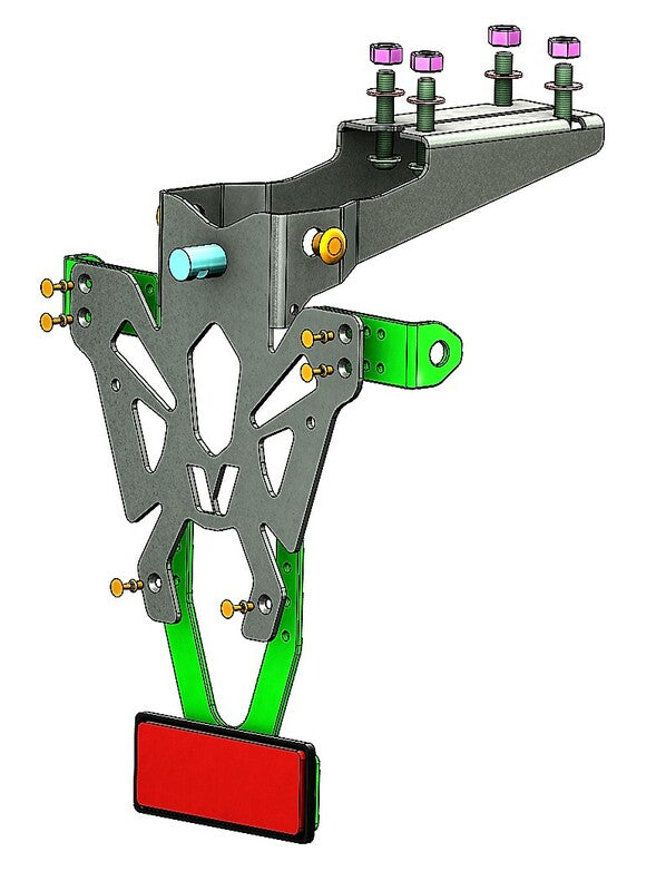 V PARTS license plate holder are manufactured in France. Inconspicuous and perfectly finished, they are specifically developed for the attached bike application list. 2mm thin but sturdy steel license plate holder Black epoxy painting CNC Manufactured – laser cut: precise finish Holes to fix license plate, indicators and license plate lighting Made in France Contents: Street legal license plate lighting, EU certified Adjustable reflector plate Reflector, EU certified More info: Optimized and discreet cable passageway Fast & easy mounting Adjustable indicators brackets Fits EU plates Indicator lights spacing: 170 to 220mm Color: Black Homologation: CE homologated Material: Steel