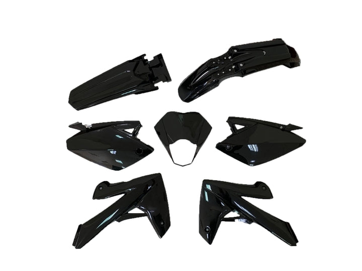 Fender and cover OEM kit composed of 7 plastic shells. Black or white. 2 front side fenders, 2 rear side fenders, 1 front wheel fender, 1 rear wheel fender, 1 front panel Color: Black