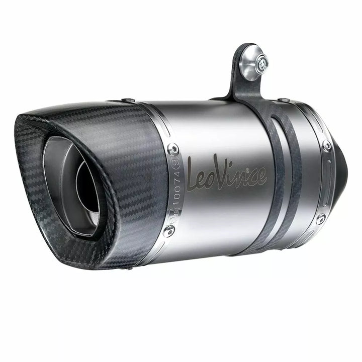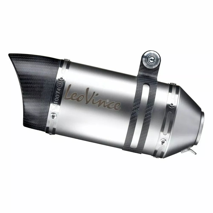 LV PRO (Compact Power), The Leovince Lv Pro Stainless Steel is the Perfect Combination Between Racing Look and Compactness., The Lv Pro Slip-On is the Result of the Leovince Research of the Best Materials and Craftmanship. Cut "End Cap, Which, Combined With the Small Size, Fully Enhances The Aesthetics of Your Bike., Features, AISI 304 Stainless Steel Sleeve, Carbon" Shark Cut "End Cap with Matte Clear Coating for UV Resistance, High Temperature Resistance, High Temperature Resistance, High Temperature Resistance, High Temperature Resistant LASER ETCHED LEOVINCE LOGO