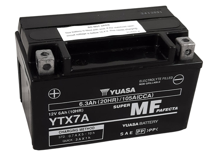 Yuasa YTX7A-FA is one High-performing AGM battery, factory activated and ready to be used directly. That is perfect for motorcycles, scooters, quad bikes and other vehicles that requires Reliable starting power, long service life and minimal maintenance.